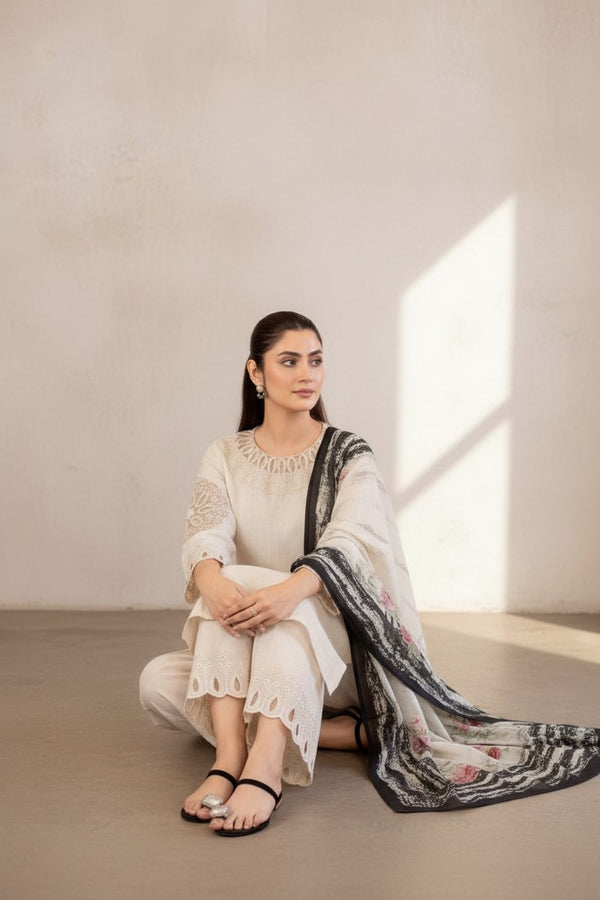 Premium Pure Handloom Cotton Unstitched Suit Set with Dupatta – Elegant & Breathable